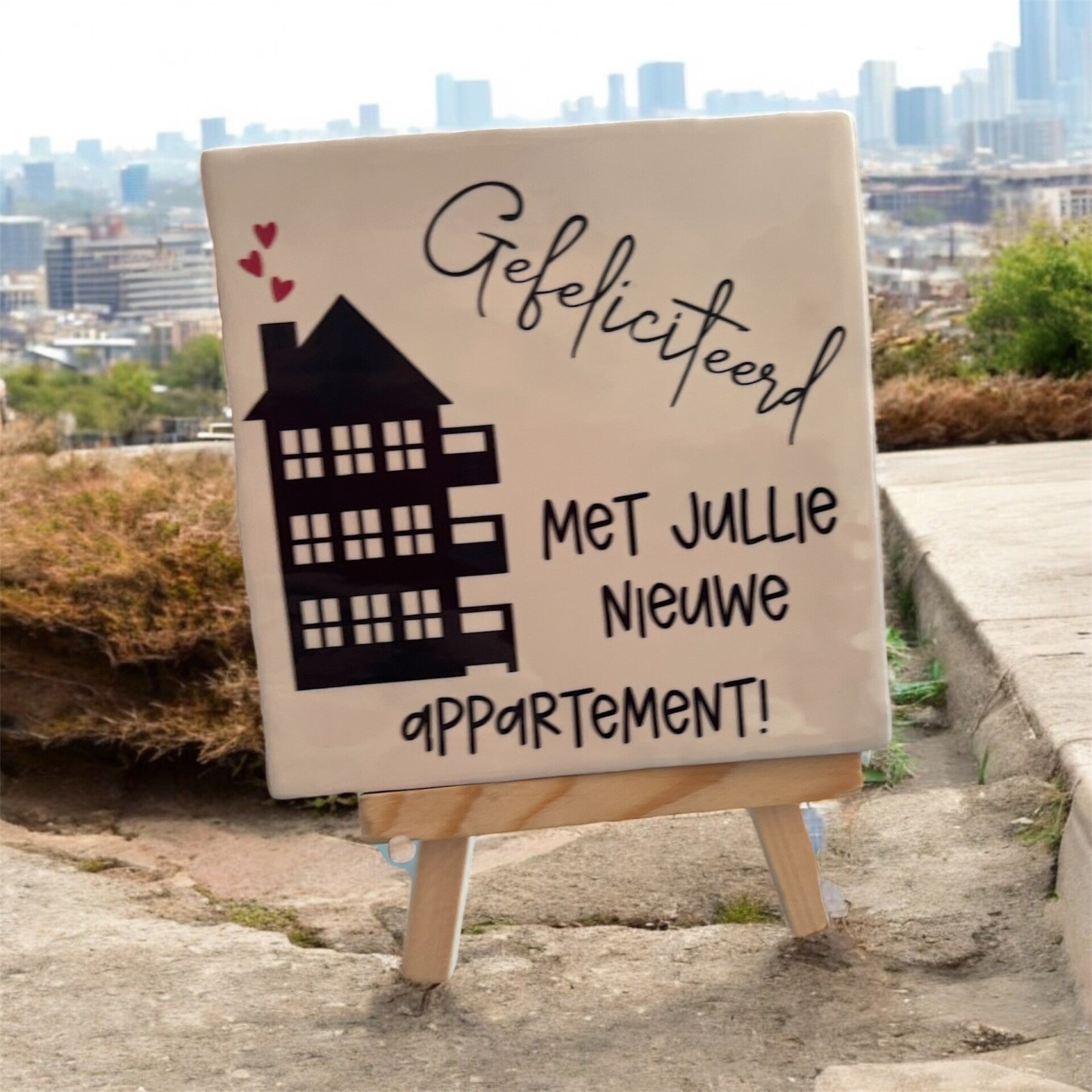 Een tegeltje bewerkt met vinyl. Tekst en kleur tegeltje naar keuze.